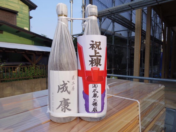 晴天の中、上棟祭を行いました。