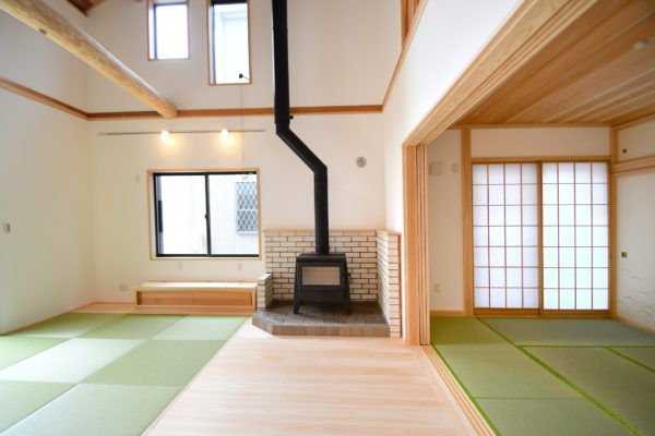 青梅市藤橋:吹き抜けリビングのある平屋建ての木の家
