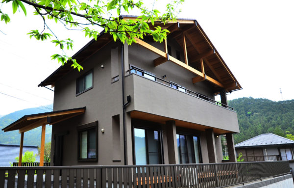 奥多摩の自然と調和した合掌登り梁のある家