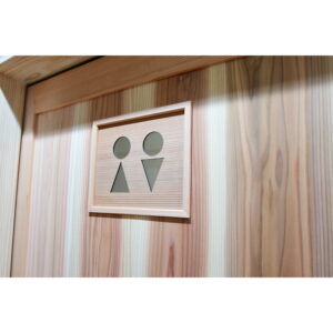 建具の上には、職人さん手づくりの木製トイレマークを。