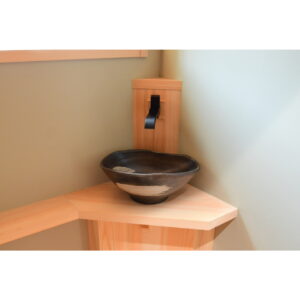 中の手洗い器は、施主様手作りの一点もの。