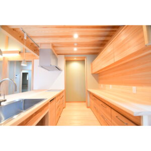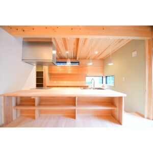 無垢材を用いた造作により、温かみのある質感と耐久性を兼ね備えた、機能性とデザイン性を両立した造作キッチンが完成しました。