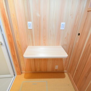 脱衣室には洗濯機置き場と折り畳み式テーブルを設置。