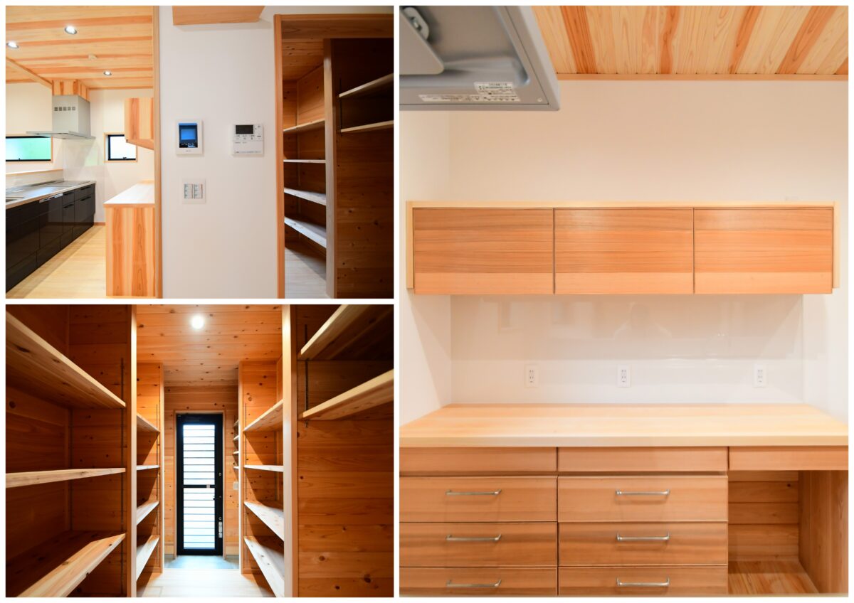 さらにキッチン裏側には3帖を超えるゆとりあるパントリーを配置。