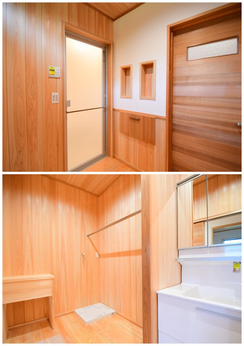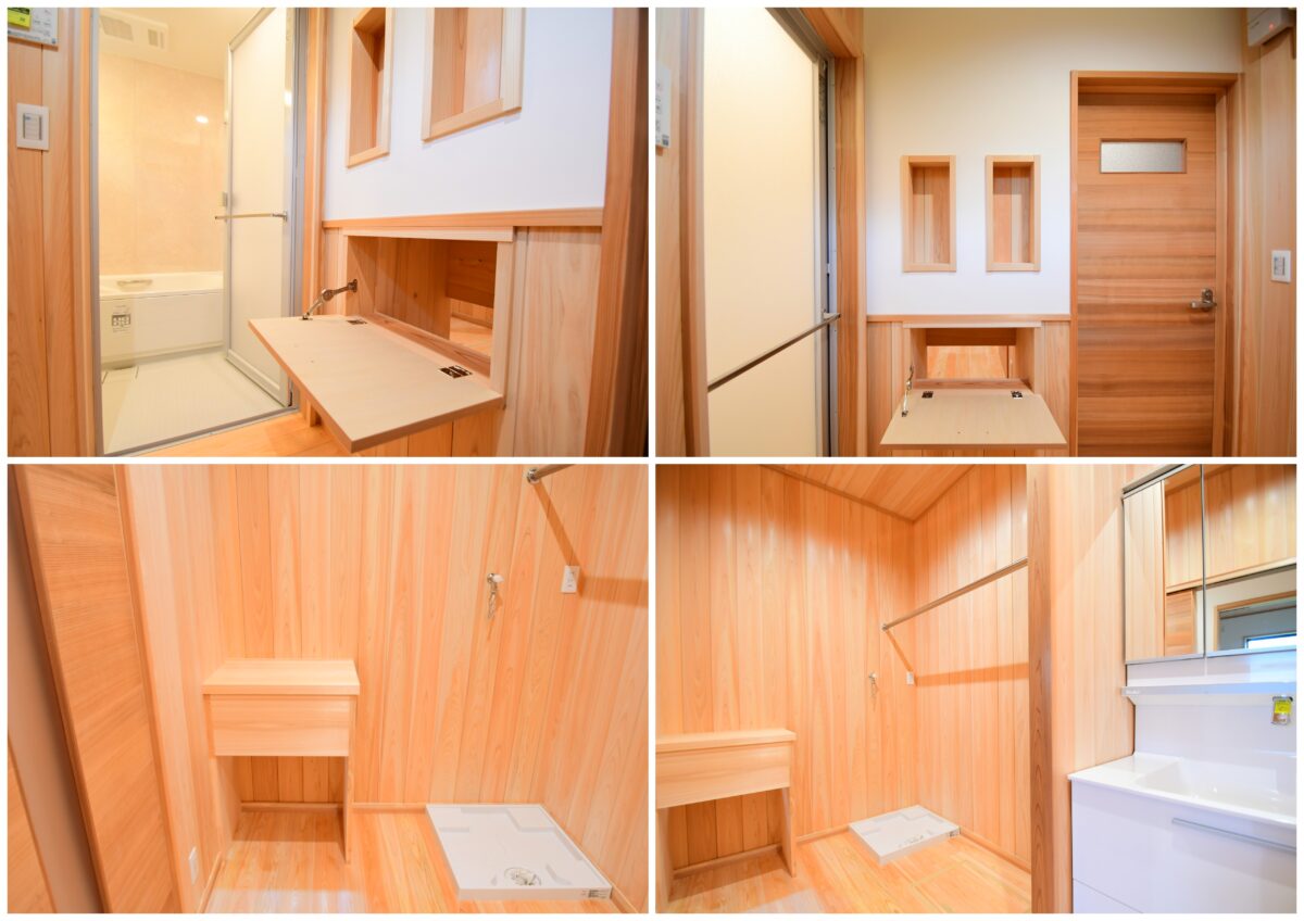 動線と収納性を工夫することで、家族みんなが快適に使える水まわり空間となっています。